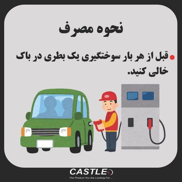 | نحوه استفاده | قبل از سوختگیری یک بطری کامل را داخل باک بریزید. سپس بلافاصله سوخت گیری نمایید تا مواد به خوبی با بنزین ترکیب شود. مناسب برای ۴۰ تا ۶۰ لیتر بنزین |
